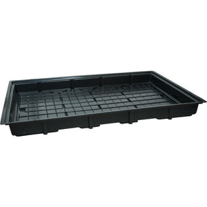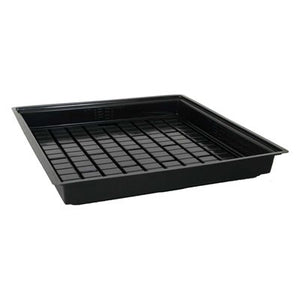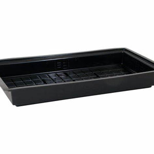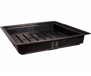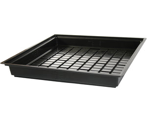 Hydroponic flood tables, also referred to as grow trays or plant trays, are a means for holding plants in a hydroponic system. These work in tandem with a stand or rolling bench, with the hydroponic reservoir underneath. A water pump feeds nutrients from the reservoir into the flood table, which will slowly drain back into the reservoir.