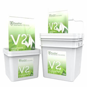 FloraFlex® has engineered the highest-quality, cleanest and most pH stable nutrients on the market. V1™ and V2™ combine as a two-part water-soluble formula, providing all of the essential nutrients needed for vigorous plant growth throughout the entire vegetative stage. Use 1-2 teaspoons per 5 gallons of water (1-2 grams per gallon). Add V1™ and then V2™ to your water source throughout the entire vegetative stage. For optimal results, make sure the EC of your water is 0.2-0.3. The EC of your water can range up to, but should not exceed 0.7. At lower dosages, V1™ and V2™ can be used as a base along with other additives.