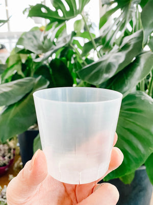 A clear pot lets you quickly check plant roots for rot or infestation. It also allows ample light for good root photosynthesis, a critical factor for orchid health. Has side slits and bottom drainage holes. Has a tapered lip on the top.
